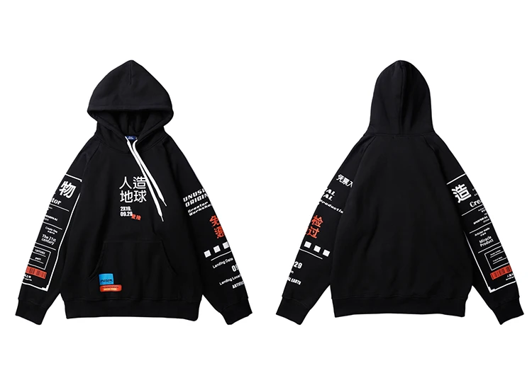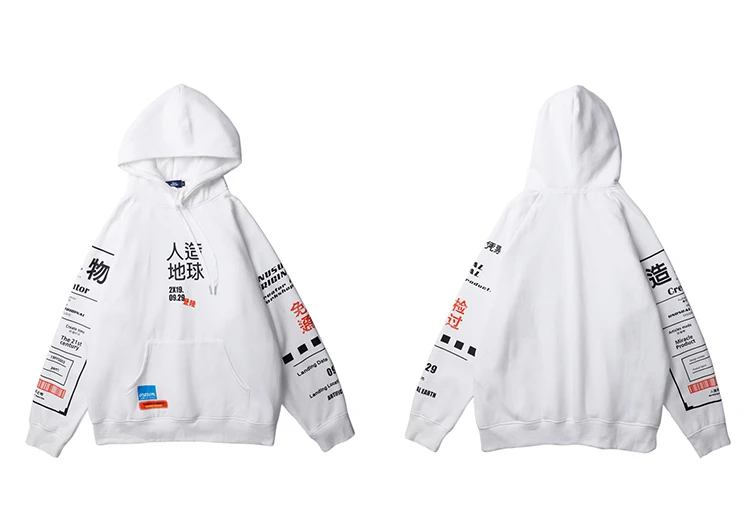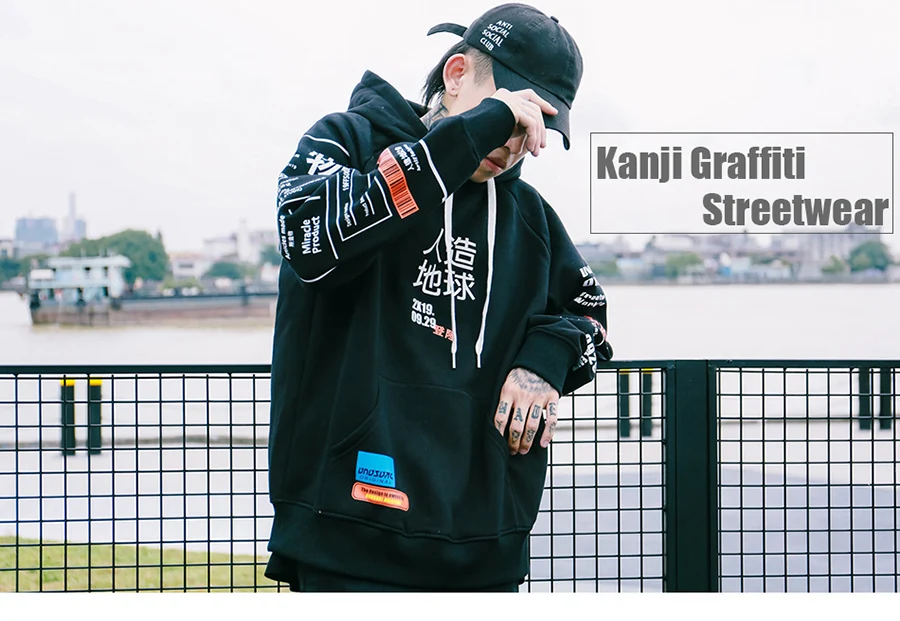 2025 Harajuku Hoodie Sweatshirt Graphic Graffiti Kanji Hip Hop Streetwear Hoodie Cotton Autumn Winter Fleece Pullover Hoodies